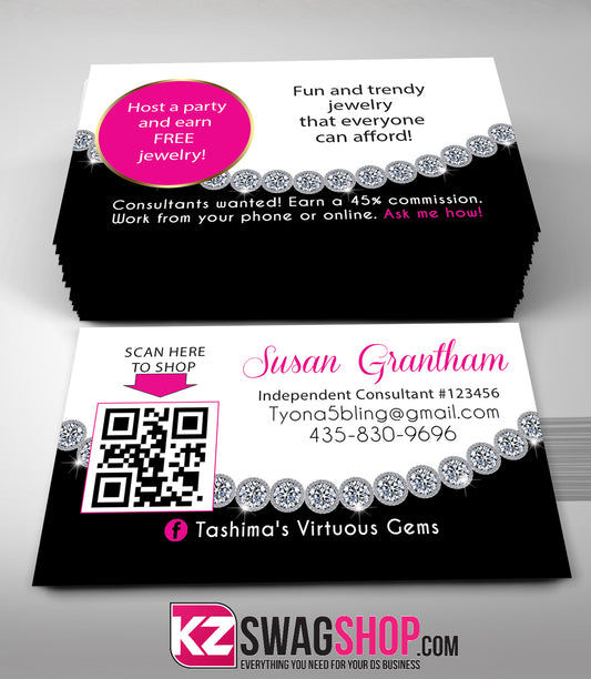 $8 Bling Jewelry Business Cards B&W Style 2 with QR CODE