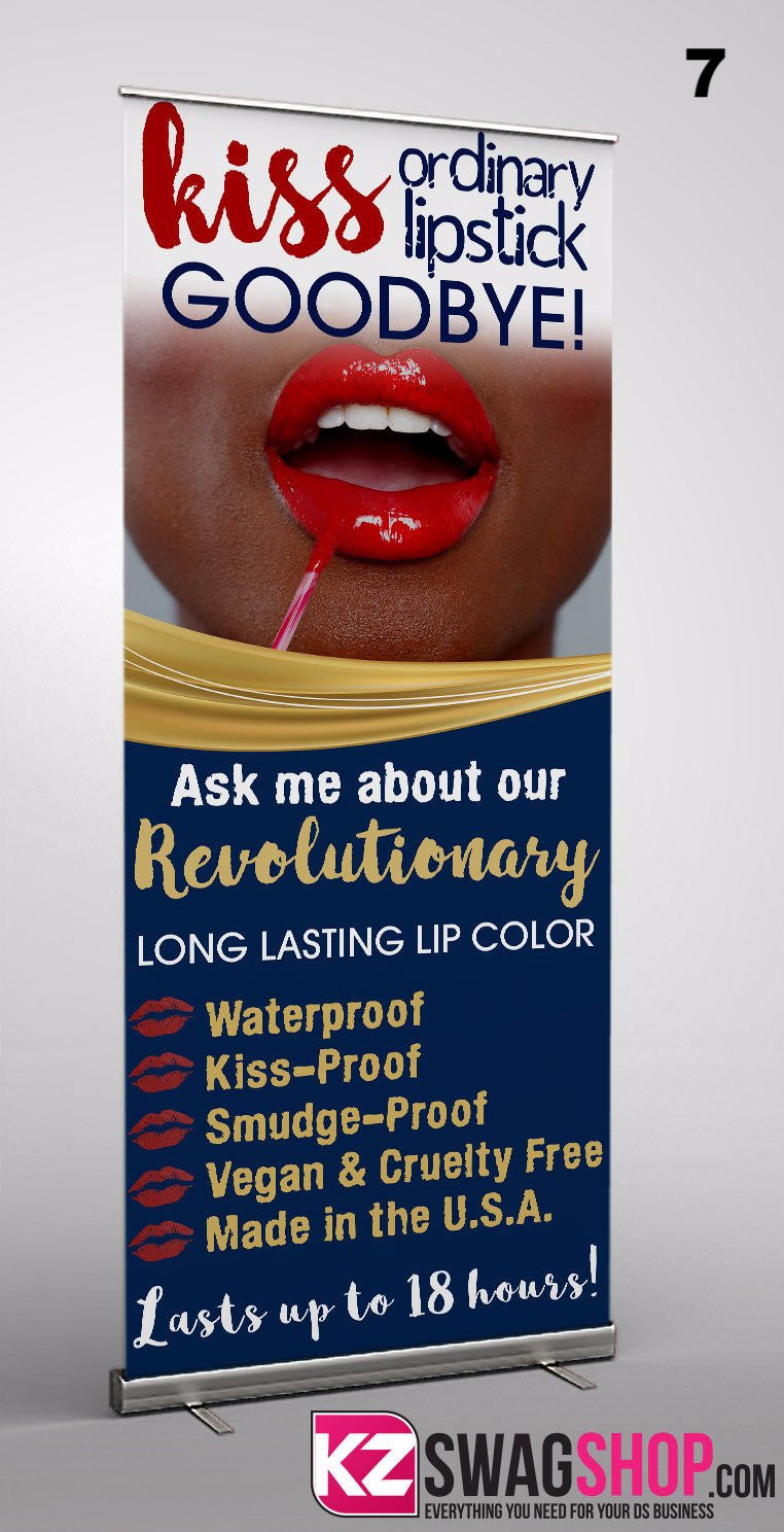 Showcase products and services with our retractable banners, which are specially made for Senegence Consultants! These attention-getting banners are lightweight and portable, so setting up a winning presentation is easy! Included with this Senegence Retractable Banner style 2 is a banner insert, retractable stand and a carrying bag. When not in use, this 33" x 81" banner retracts for storage in its aluminum casing.