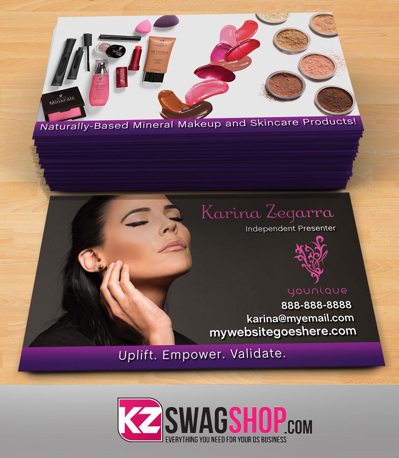 Specially designed for Younique Consultants! Our Younique Business Cards Style 4 are unique, vibrant, and one of a kind! Forget about your outdated business cards and get ready to stand out from the rest with our professionally designed business cards that not only stay in prospective customers' memories but they also wipe out the competition.